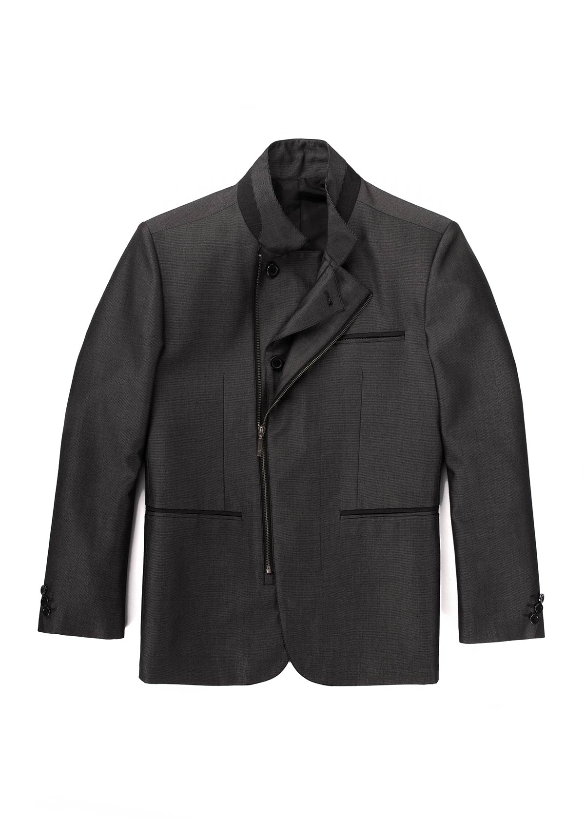 Elevate your style with this men's blazer featuring a sleek asymmetric zip opening and a sophisticated Mao collar. Perfect for modern, edgy looks, it combines contemporary design with comfort for versatile, standout fashion.