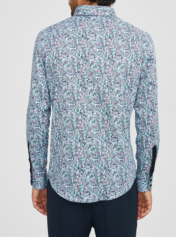 Upgrade your wardrobe with our men's long sleeve shirt, featuring a distinctive jotted check print and stylish contrast inserts. Perfect for adding a touch of modern sophistication to any outfit, ensuring you stand out at any event or occasion.