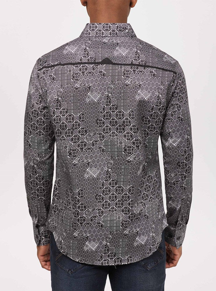Upgrade your wardrobe with this men's long sleeve shirt featuring a striking Marrakech trellis print. Perfect for both casual and formal settings, it adds a unique touch of elegance and style. Stand out with this distinctive piece!
