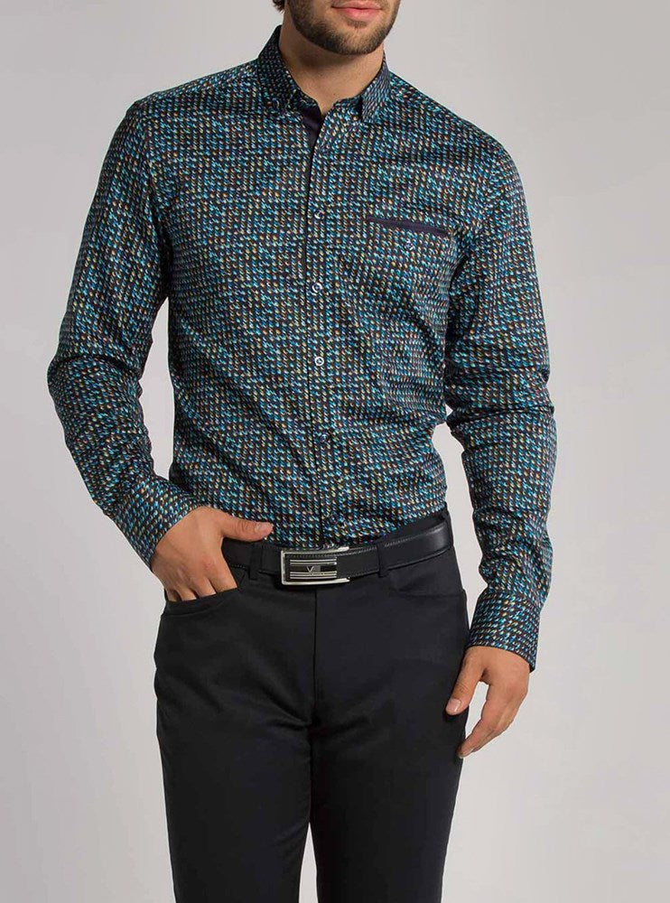 Step up your style game with our men's long sleeve shirt, featuring a dynamic deconstructed houndstooth print. this shirt is designed to keep you looking sharp and feeling energized, perfect for making a bold statement wherever you go!