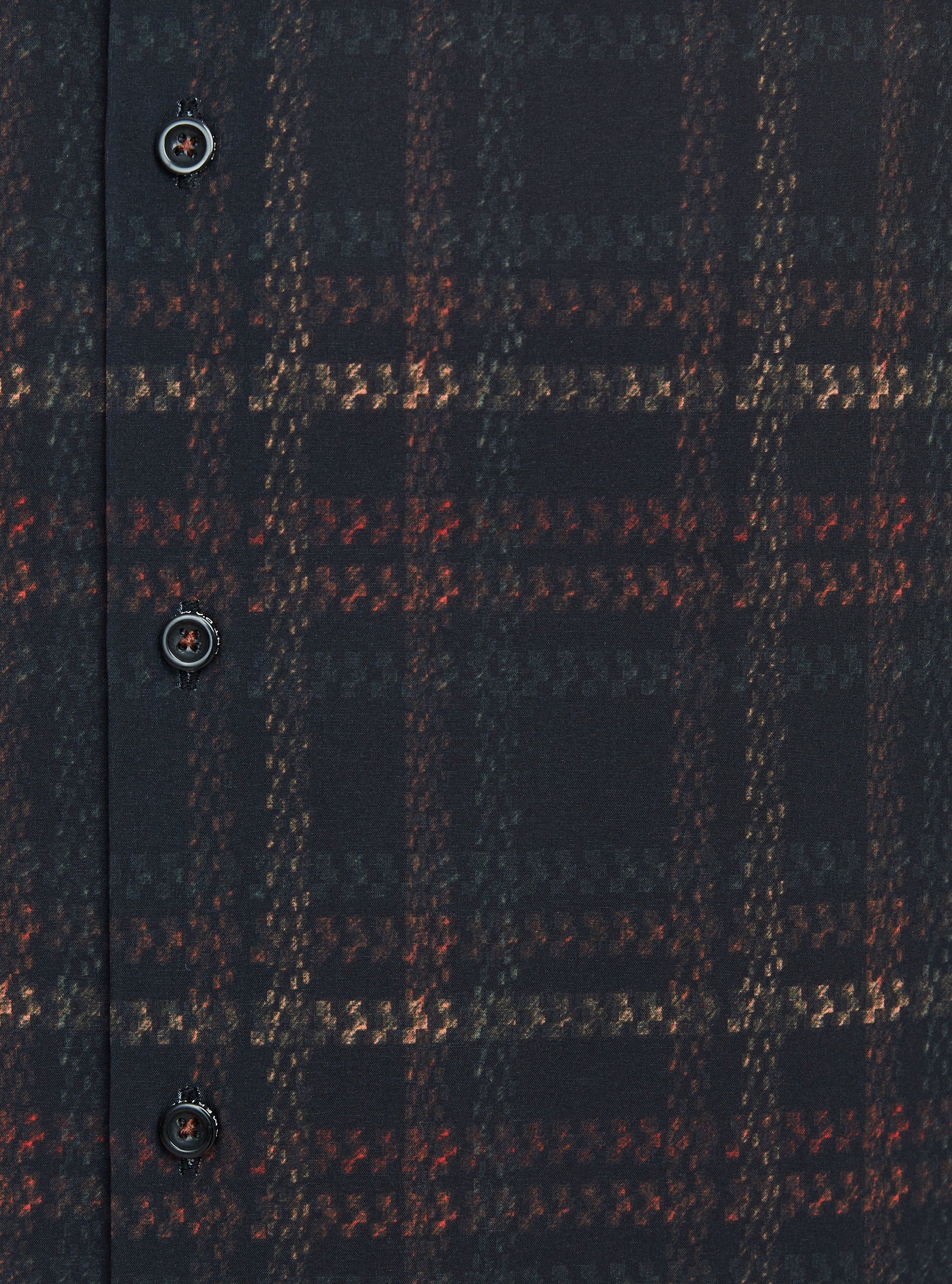 Make a statement with this plaid-glitch long sleeve shirt! Stretch microfiber keeps you comfy, contrast trims add flair, and the no-iron magic means you’re always ready to roll.
