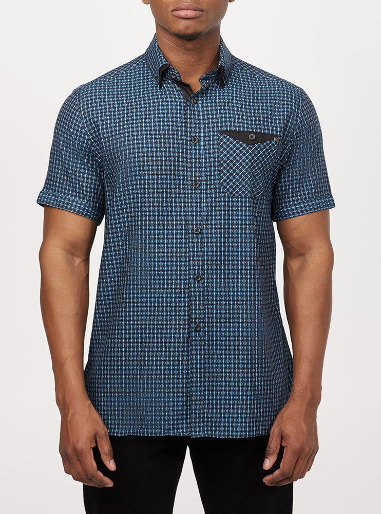Upgrade your wardrobe with this men's short sleeve shirt crafted from yarn-dyed mini plaid fabric. Perfect for any occasion, this shirt combines classic style with modern comfort, making it a versatile and stylish choice.