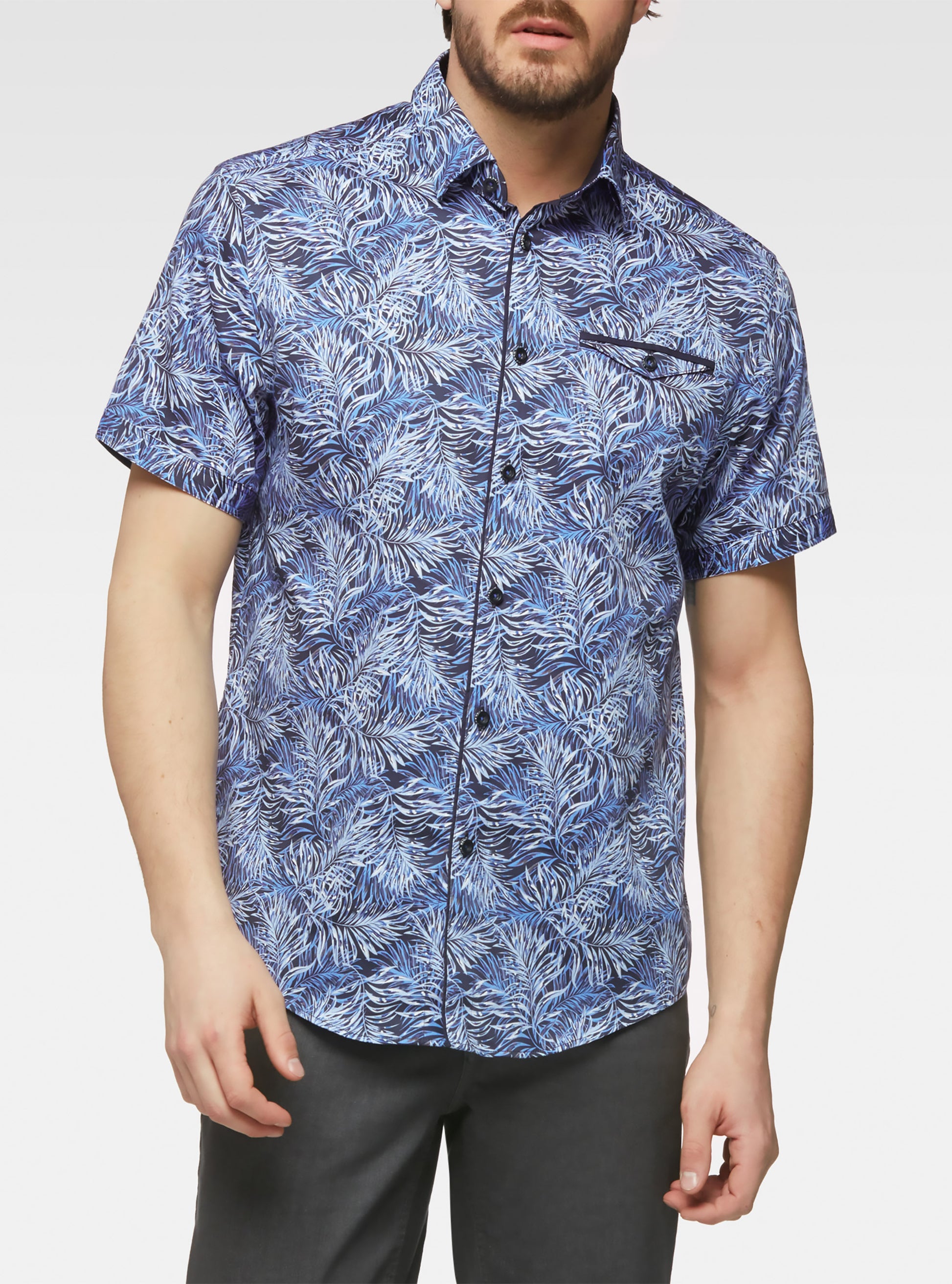 Revamp your style with our men's short sleeve shirt, featuring a dynamic shattered graphite print and sleek contrast inserts. Perfect for adding a bold and playful touch to your casual wardrobe.
