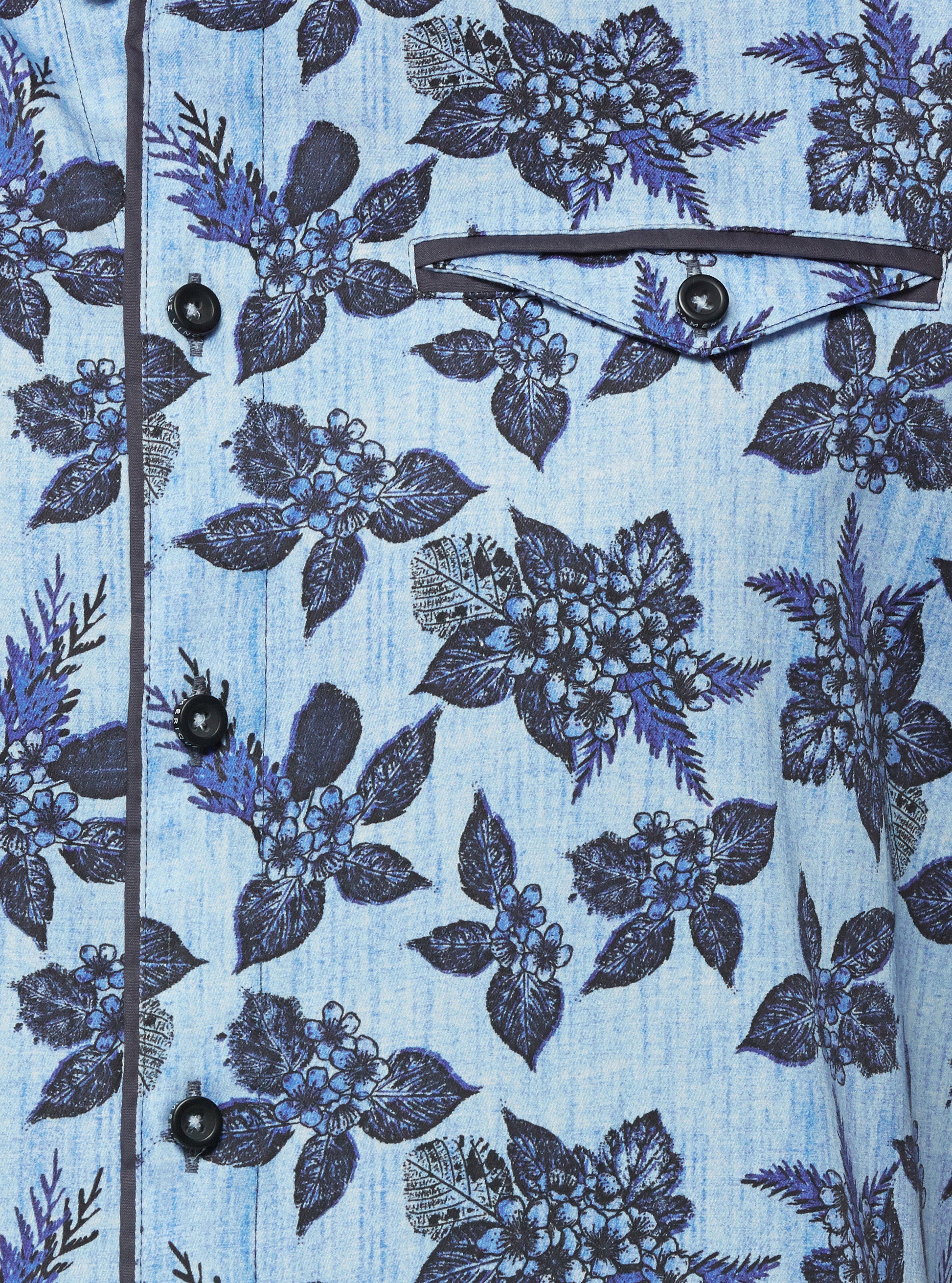 Add a touch of charm to your wardrobe with our men's short sleeve shirt, featuring a delightful vintage floral print and stylish contrast inserts. Perfect for showcasing your fun and vibrant style.