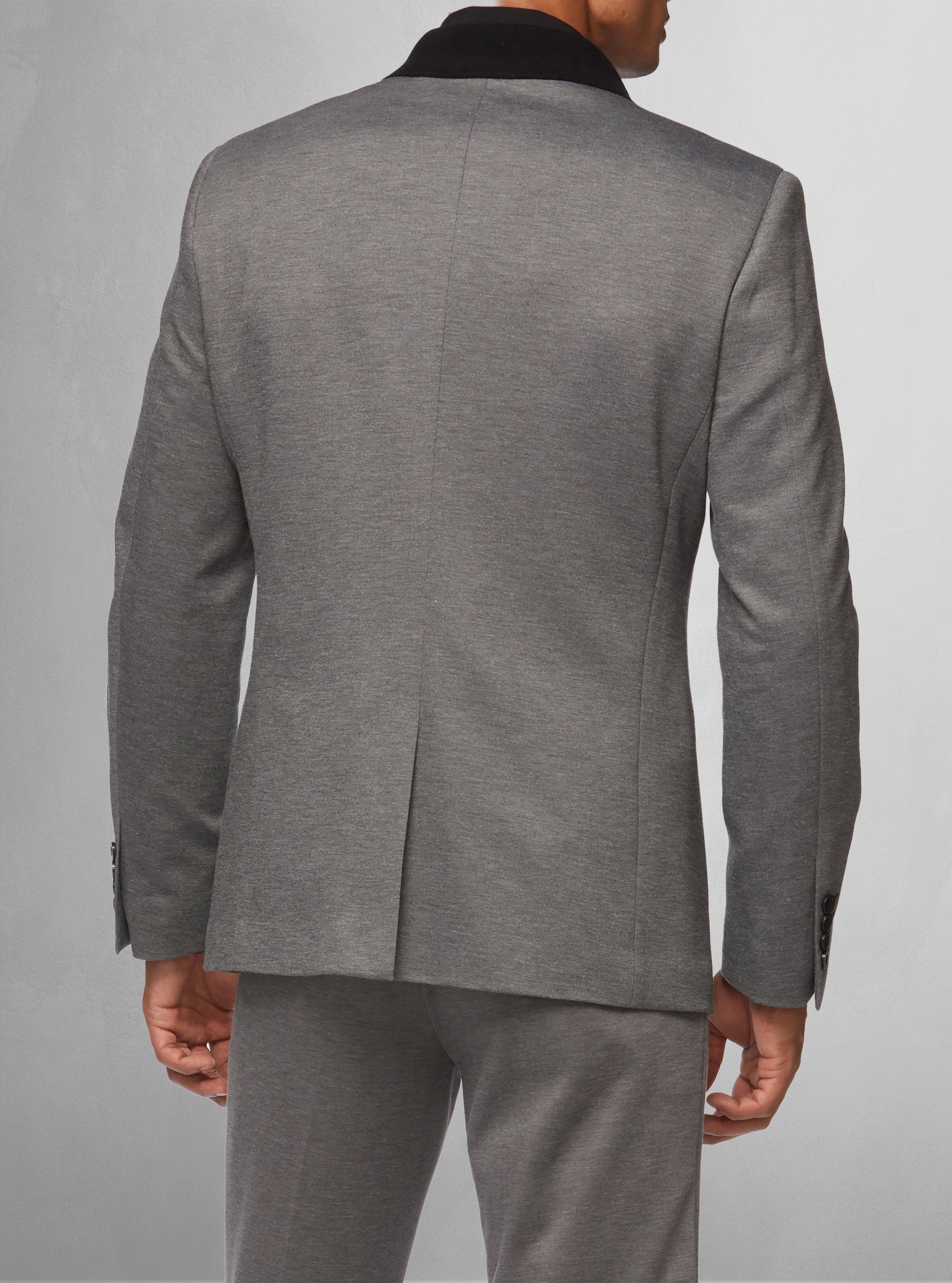 Tailored for sophistication, this men’s graduation blazer is made from melange pique knit fabric. A fully fashioned rib collar adds a modern touch, while stretch armholes ensure comfort and freedom of movement.
