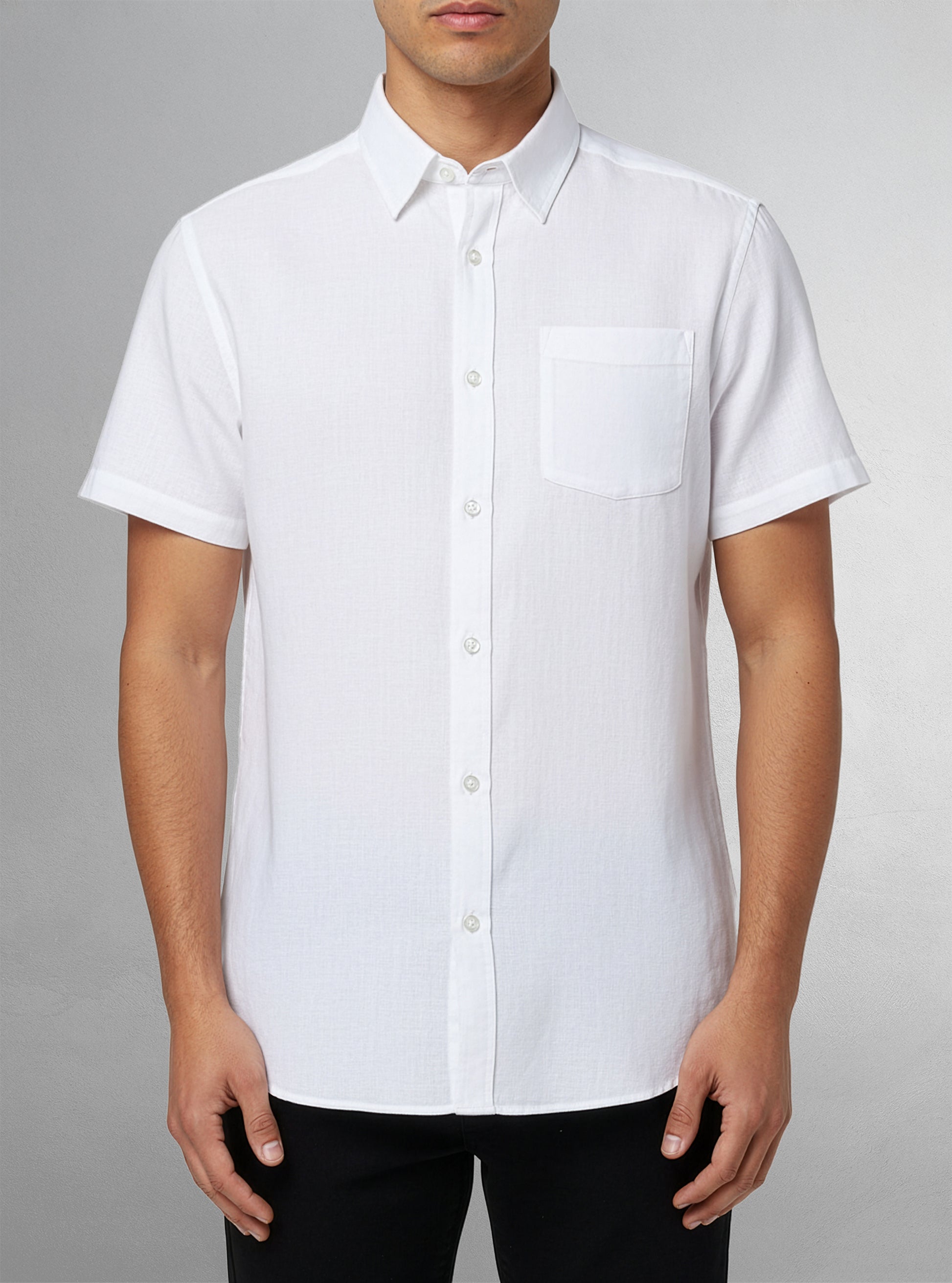 Indulge in the luxurious comfort and style of our men's casual short sleeve shirt, expertly designed with a two tone yarn effect and made from microfiber fabric. Elevate your wardrobe with this must-have piece that exudes sophistication and charm.